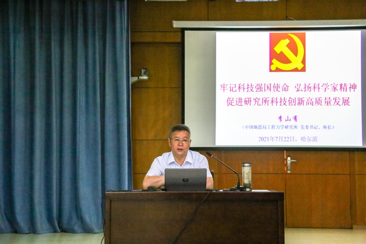 發布時間: 2021-07-27 點擊數量:47347月22日,工力所舉行黨史學習教育專題黨課報告會。工力所黨委書記、所長李山有同志以“牢記科技強國使命 弘揚科學家精神 促進研究所科技創新高質量發展”為主題向全所干部職工和學生黨員講授黨史學習教育專題黨課。