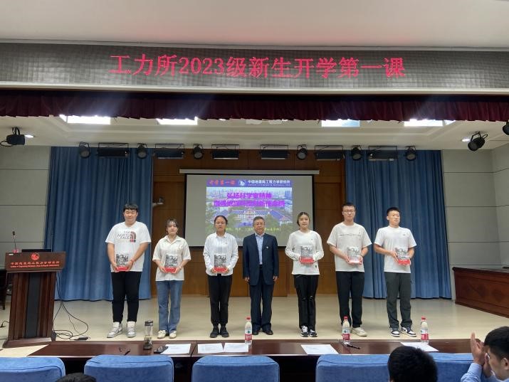 入所教育結(jié)束后,李山有講授開學(xué)第一課。他帶領(lǐng)大家重溫了劉恢先教授的科學(xué)家精神和愛國(guó)愛黨情懷,強(qiáng)調(diào)科研誠(chéng)信的重要性,勉勵(lì)大家要牢記使命責(zé)任,秉承工力所“嚴(yán)謹(jǐn)、求真、博學(xué)、創(chuàng)新”的精神,學(xué)到知識(shí)、學(xué)會(huì)做人。最后,他向黨員代表贈(zèng)送了《習(xí)近平的七年知青歲月》一書,鼓勵(lì)同學(xué)們成為有理想、敢擔(dān)當(dāng)、能吃苦、肯奮斗的新時(shí)代青年。